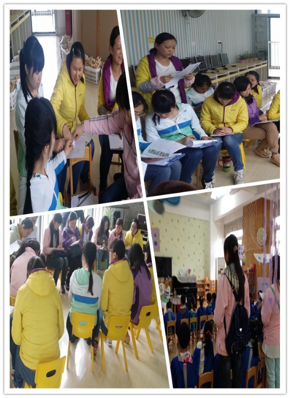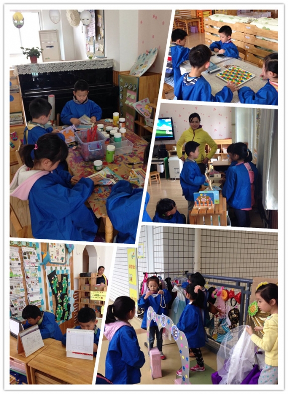 在游戏中成长 ————区域游戏教研组活动 发布人:于阗 发布时间:2015/4/3 15:24:39 结合主题《春天的秘密》我们开展了丰富多彩的游戏活动,孩子们激情洋溢的穿梭在各个区域游戏间,乐此不疲。 4月2日,区域游戏组的成员们走进了大班年级,观摩学习主题区域游戏和角色游戏的创设与指导。观摩的教师们通过游戏蹲点、跟踪观察、问题记录的方式,从游戏环境的创设;丰富多元、有层次的材料提供;教师适时巧妙的游戏指导、宽松愉悦的交流情境中,感受着孩子们在游戏中“自主、自由、自发”的快乐。 在教研交流中,老师们针对本班实际情况进行了反思,并带着问题与组织活动的教师进行互动。通过讨论更进一步的认识了主题区域游戏和角色游戏的创设与指导策略。
